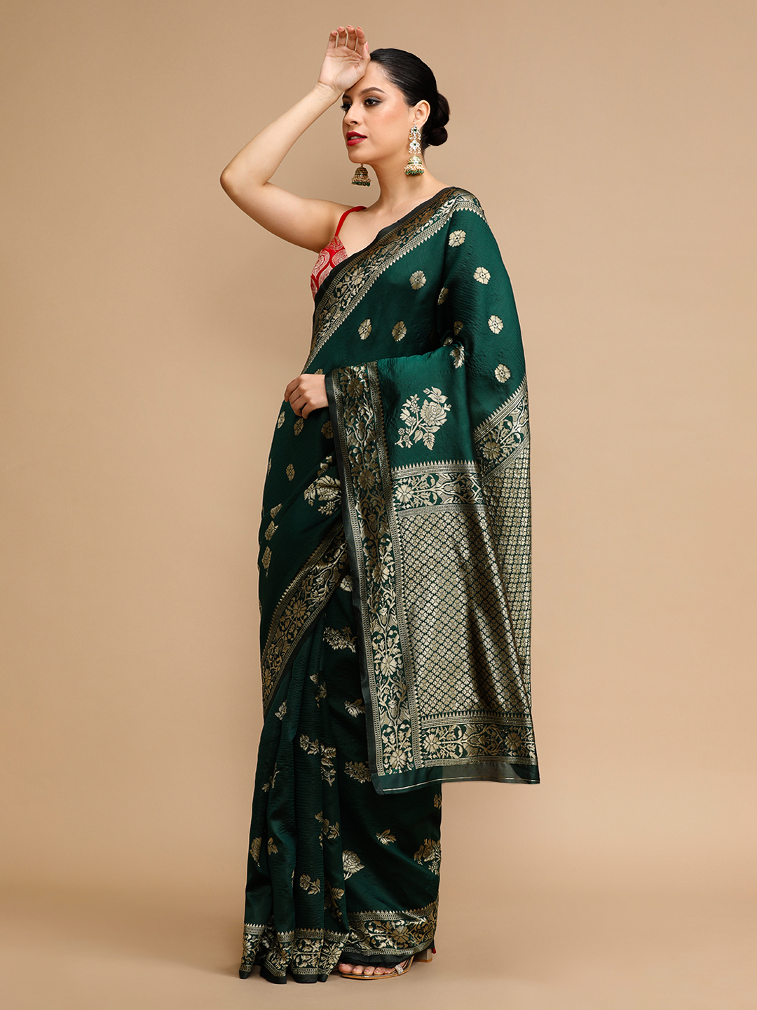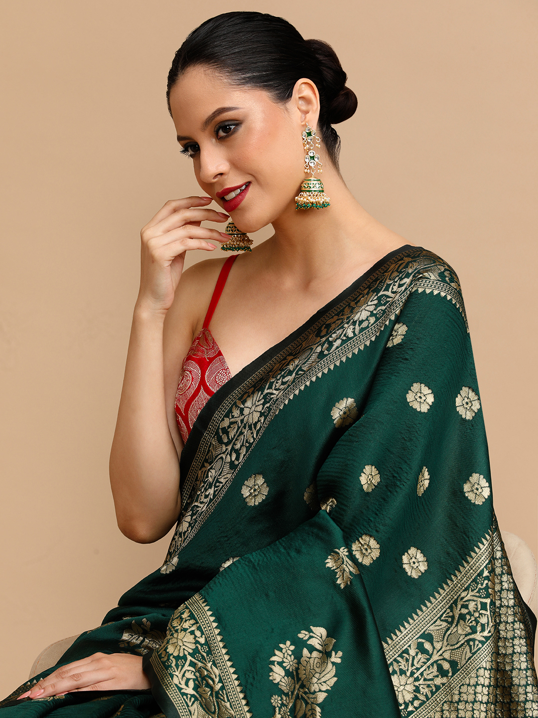Green Color Lichi Silk Saree Woven Jacquard Designer For Ceremonial Looks