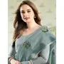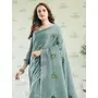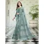 Green Color Linen Fabric Sophisticated Floral Embroidered Saree