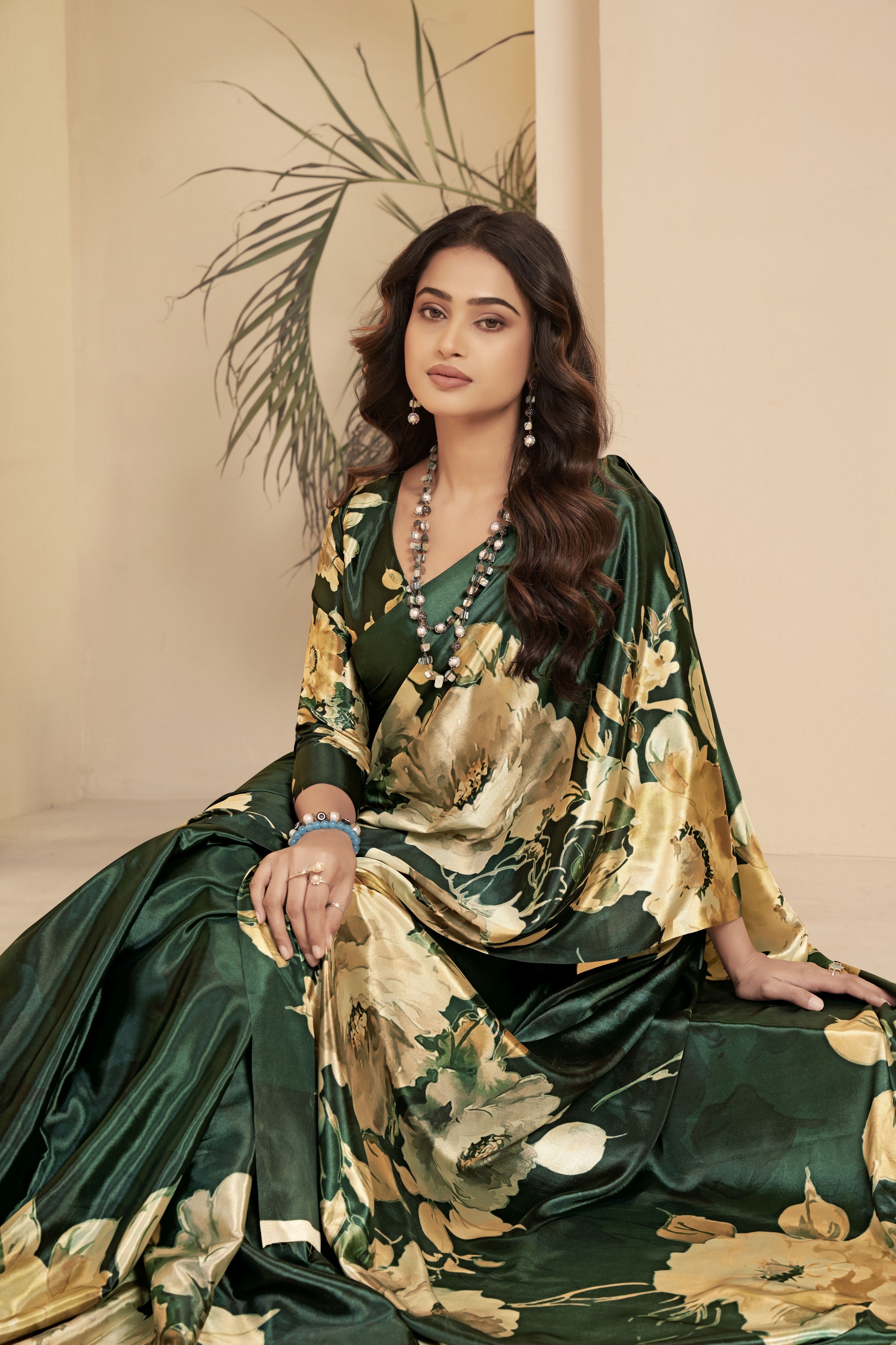 Green Color Malai Crepe Silk Designer Digital Printed Ethnic Partywear Saree