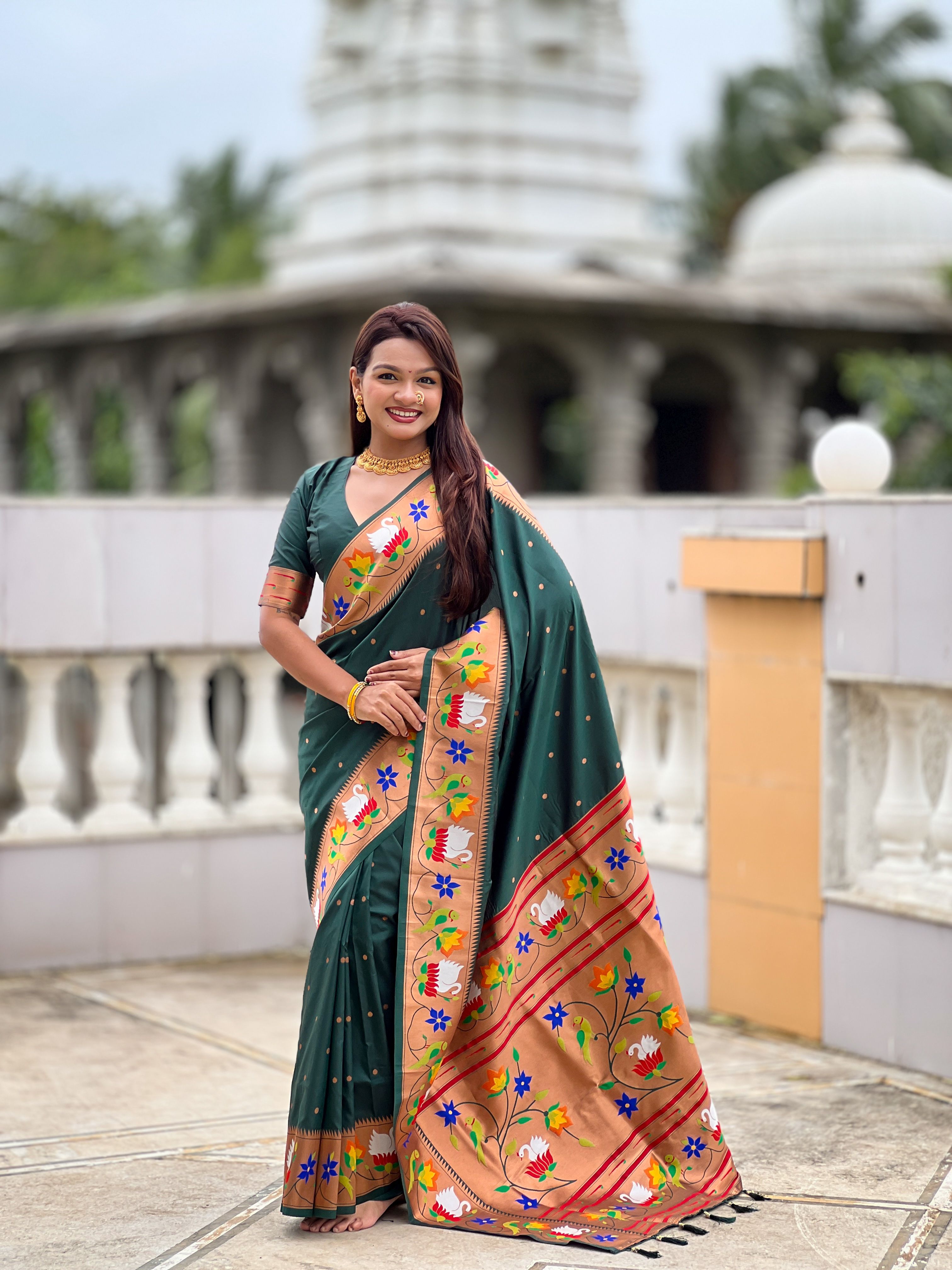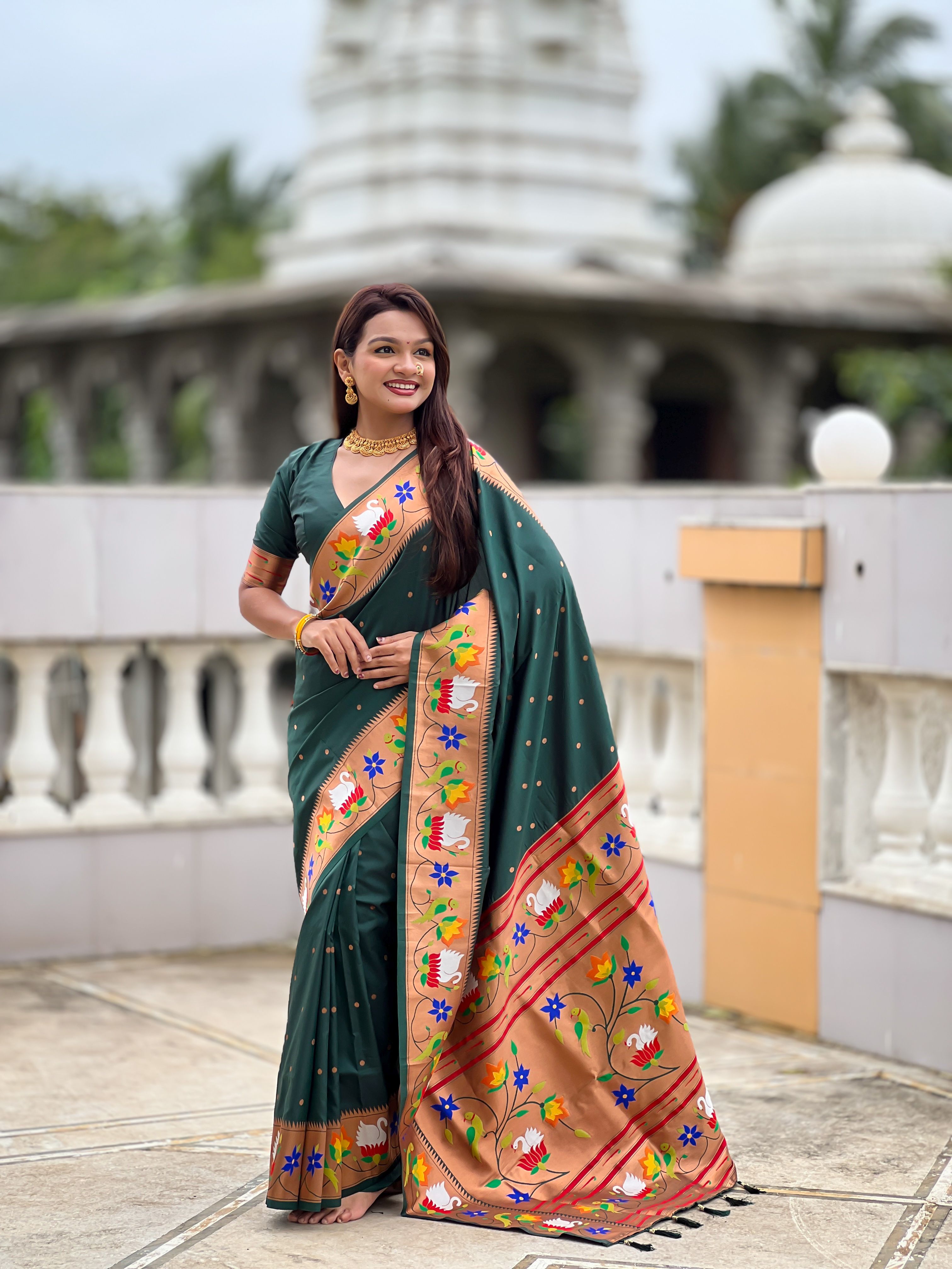 Green Color Paithani Silk Woven Meenakari Jacquard Designer Heavy Wedding Special Saree