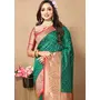 Green Color Soft Silk Fabric Ethnic Weaving Jacquard Designer Partywear Heavy Saree