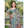 Grey Color Linen Cotton Fabric Woven Border Designer Printed Saree