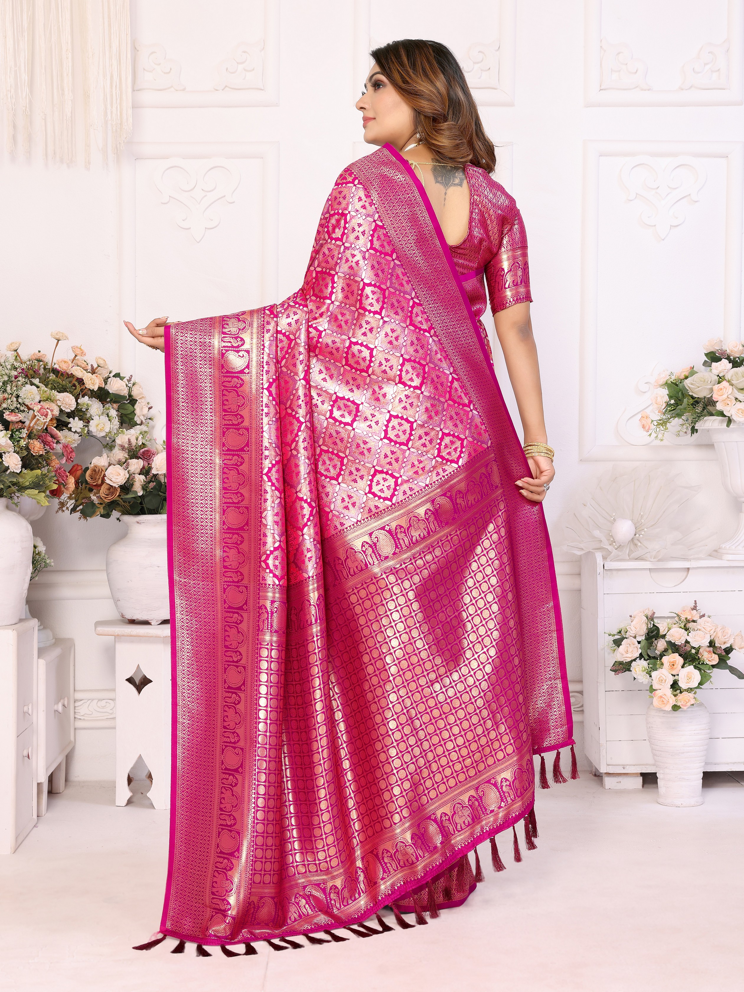 Heavy Zari Woven Designer Magenta Color Banarasi Silk Saree