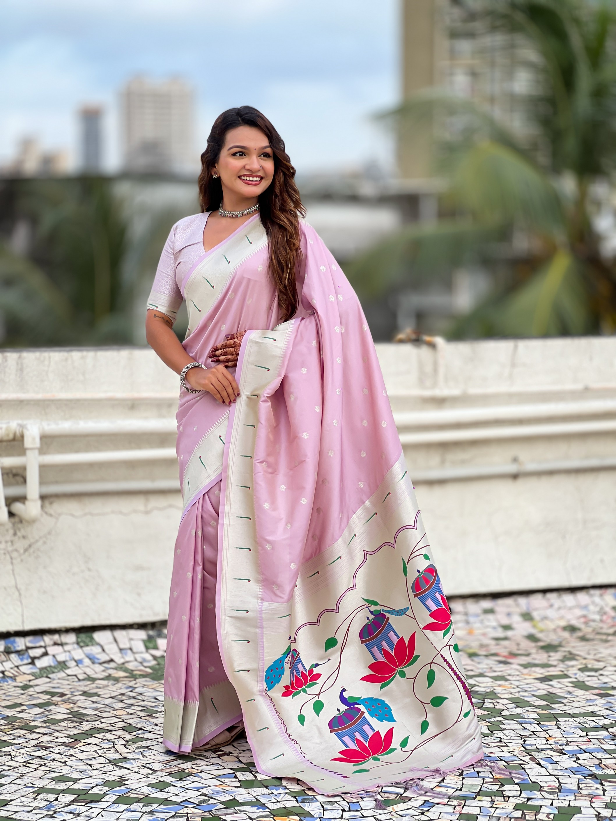 Lavender Color Paithani Silk Woven Designer Ceremonial Partywear Saree