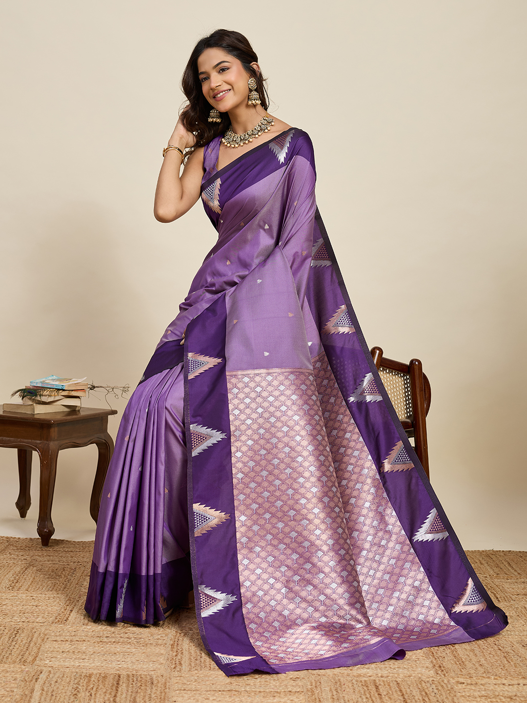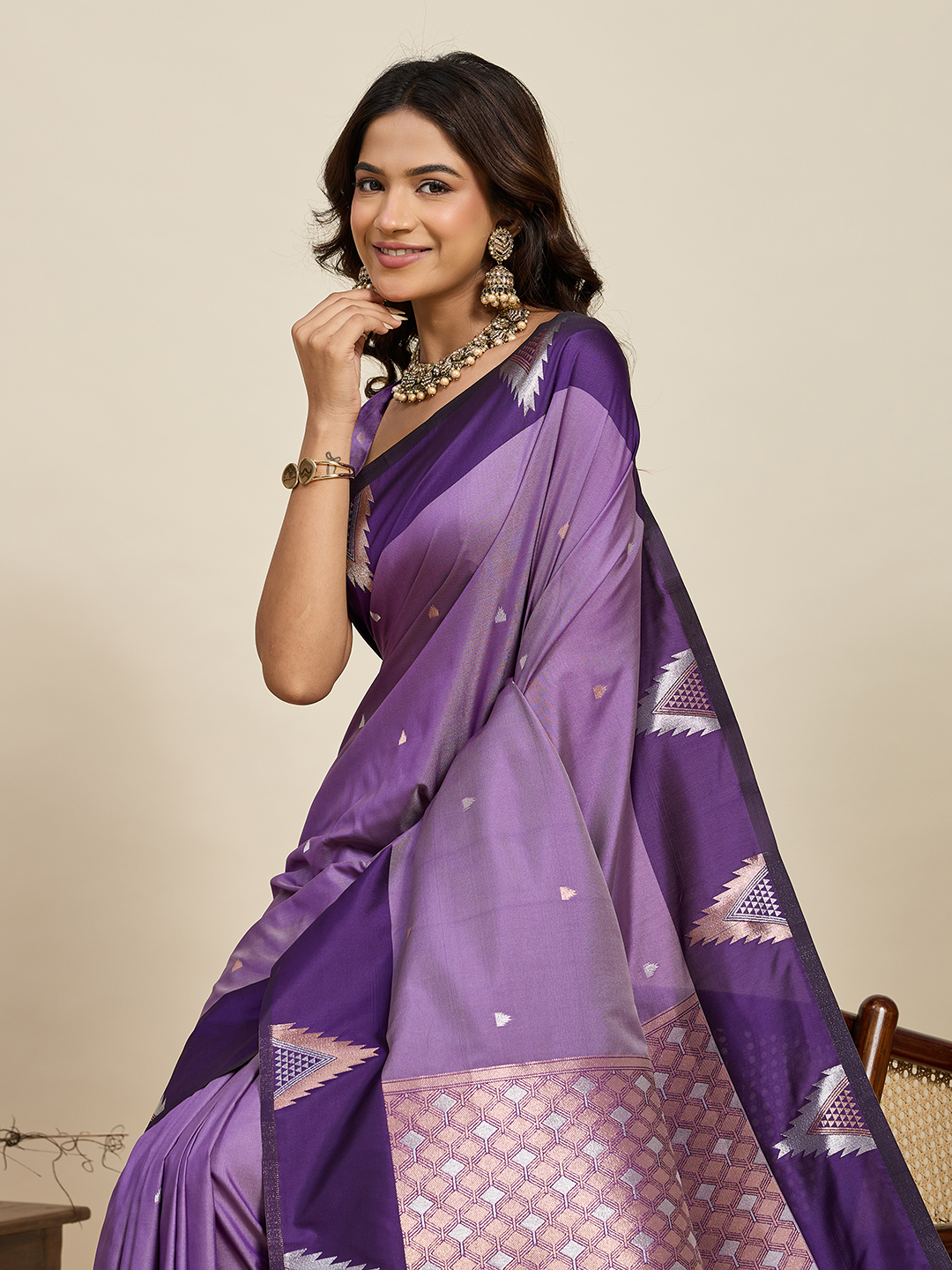 Lavender Color Soft Silk Woven Jari Designer Saree