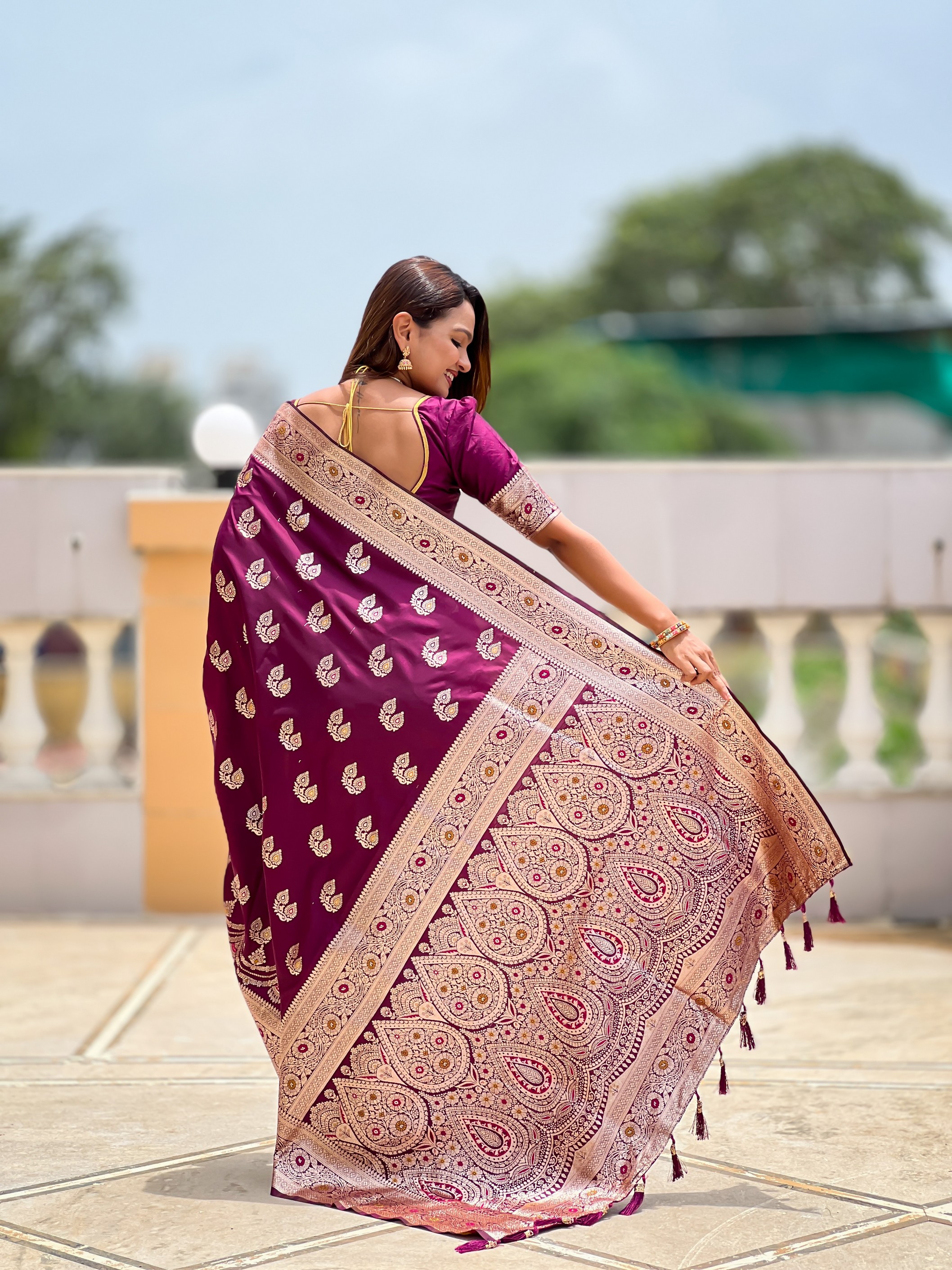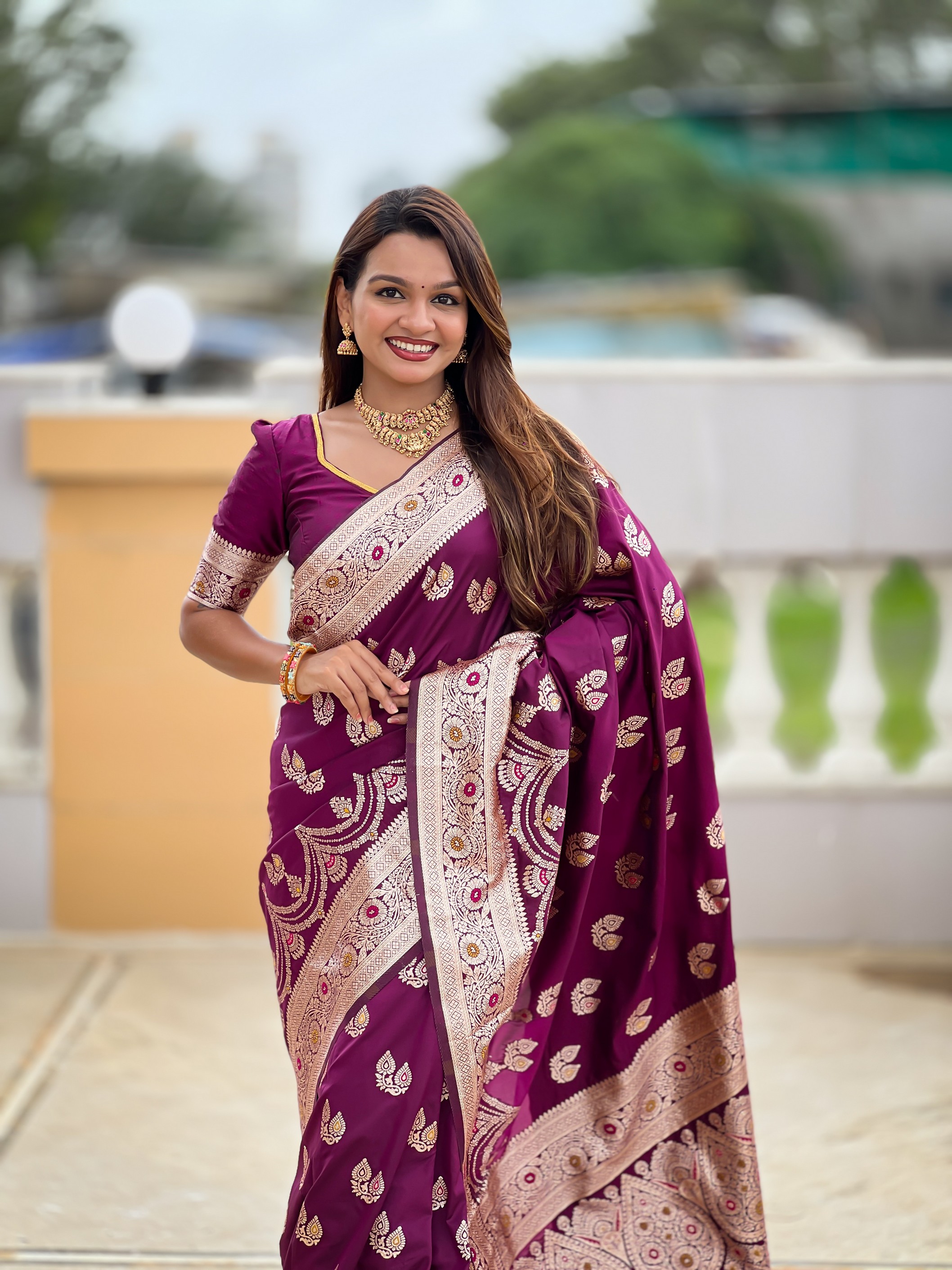 Magenta Color Banarasi Silk Saree With Woven Jacquard Designer Ethnic Style