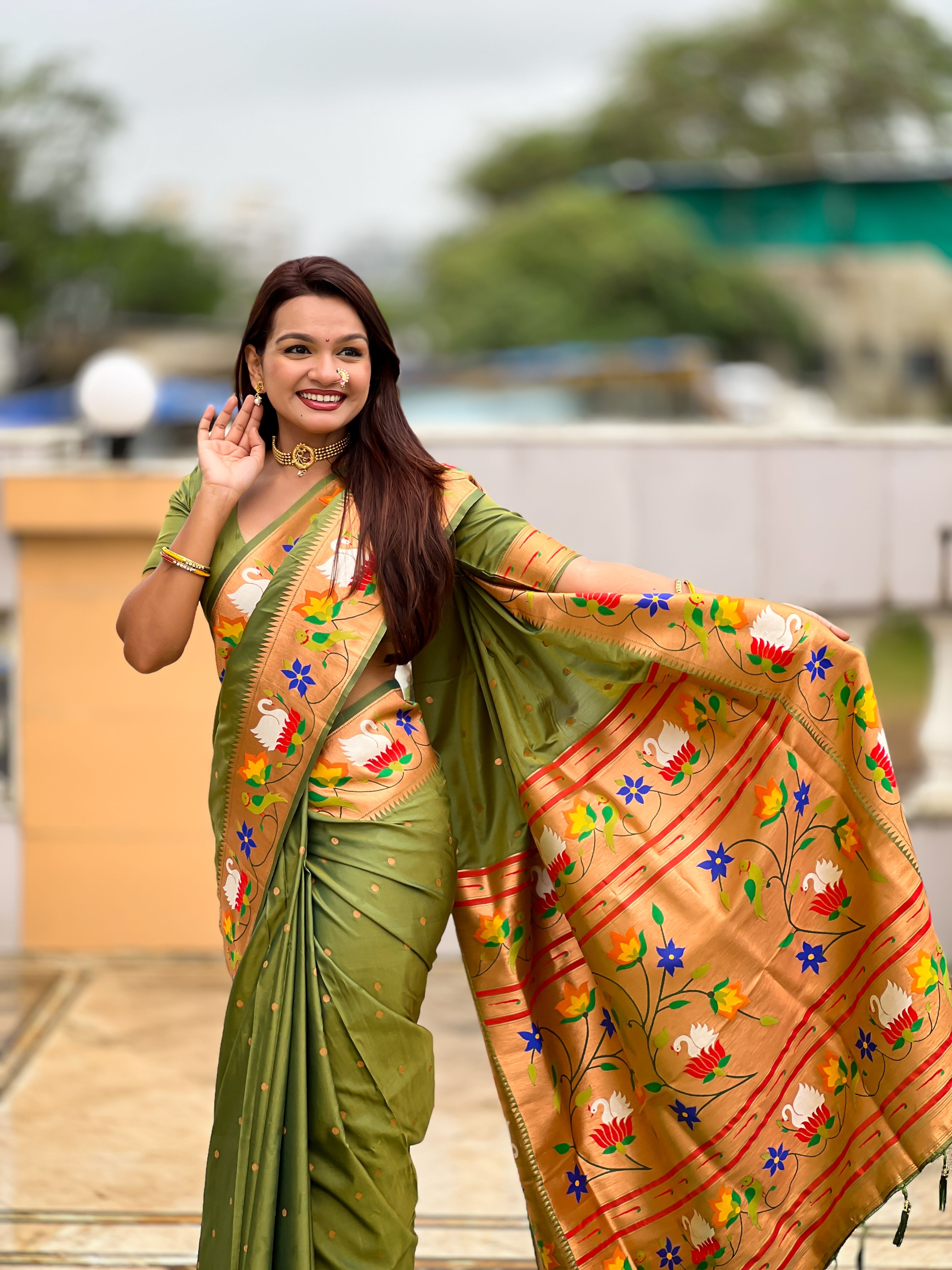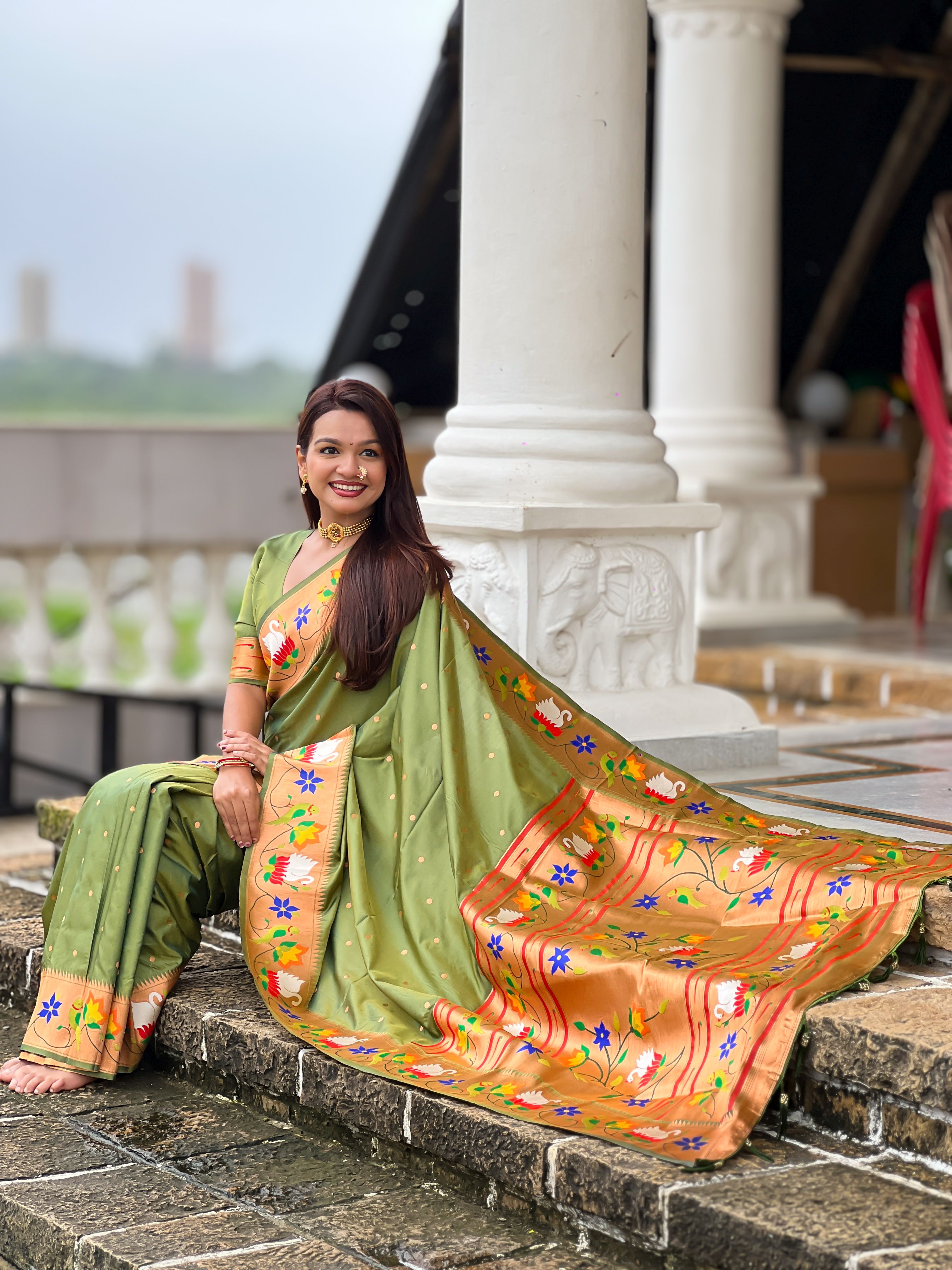Mahendi Color Paithani Silk Woven Meenakari Jacquard Designer Heavy Wedding Special Saree