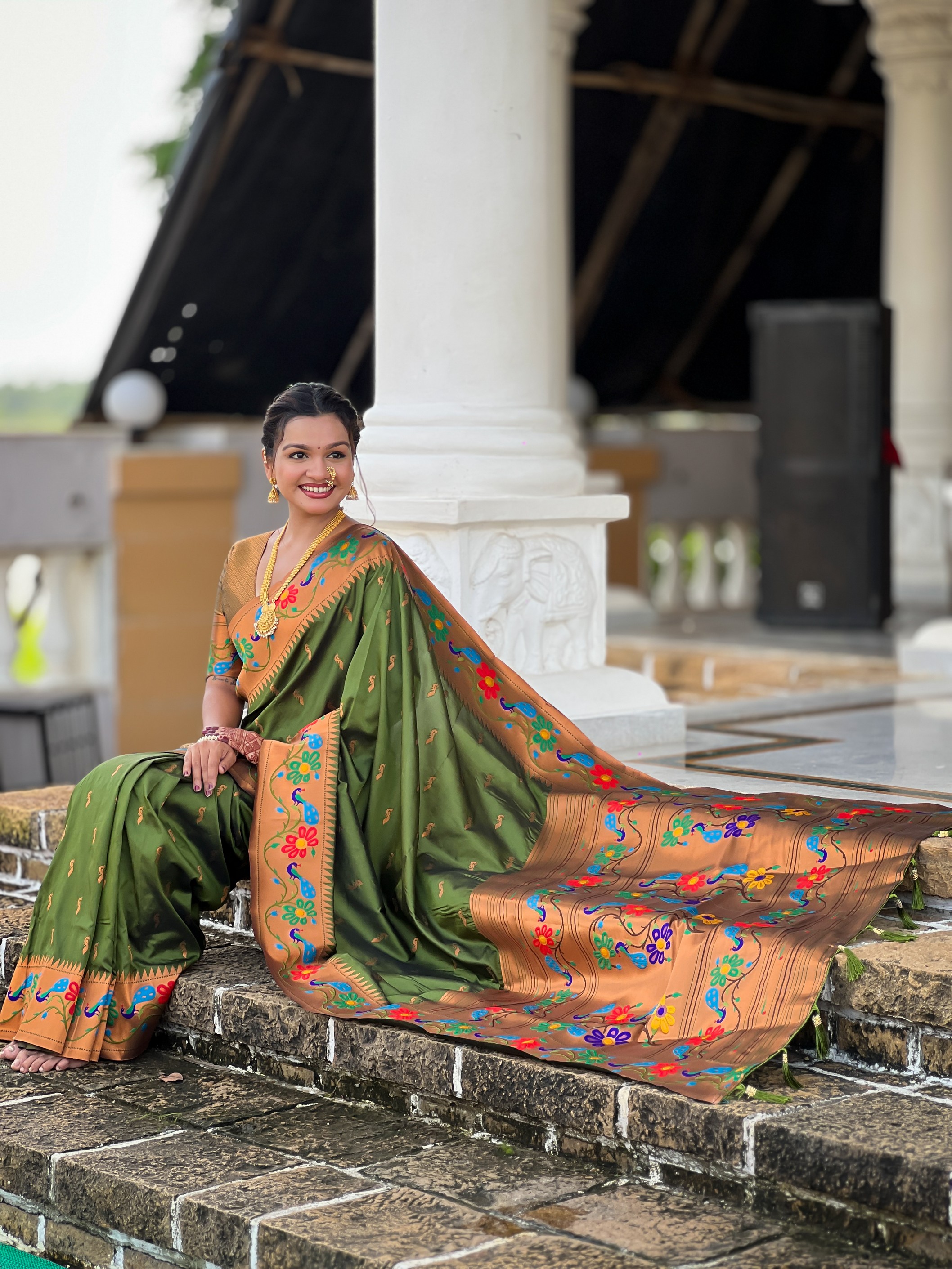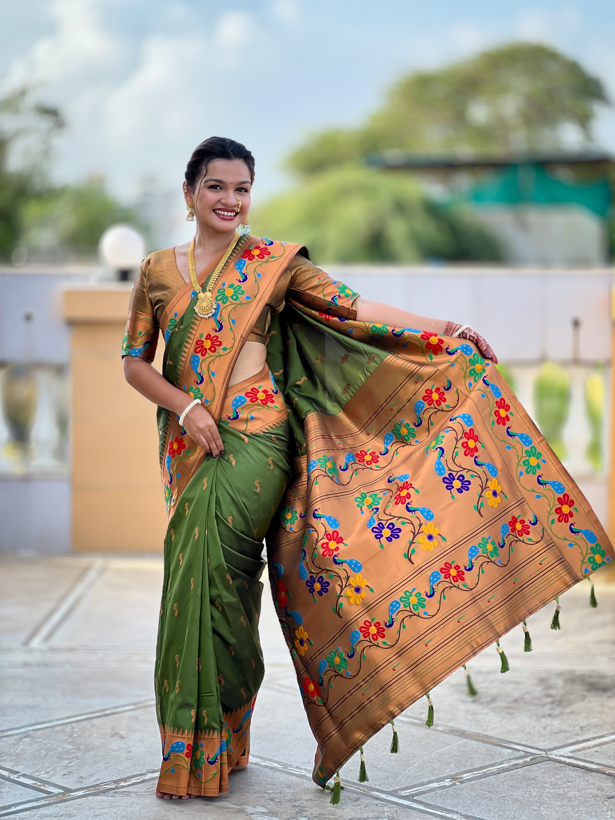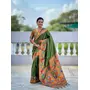 Mahendi Color Woven Meenakari Jacquard Designer Paithani Silk Fabric Ethnic Saree