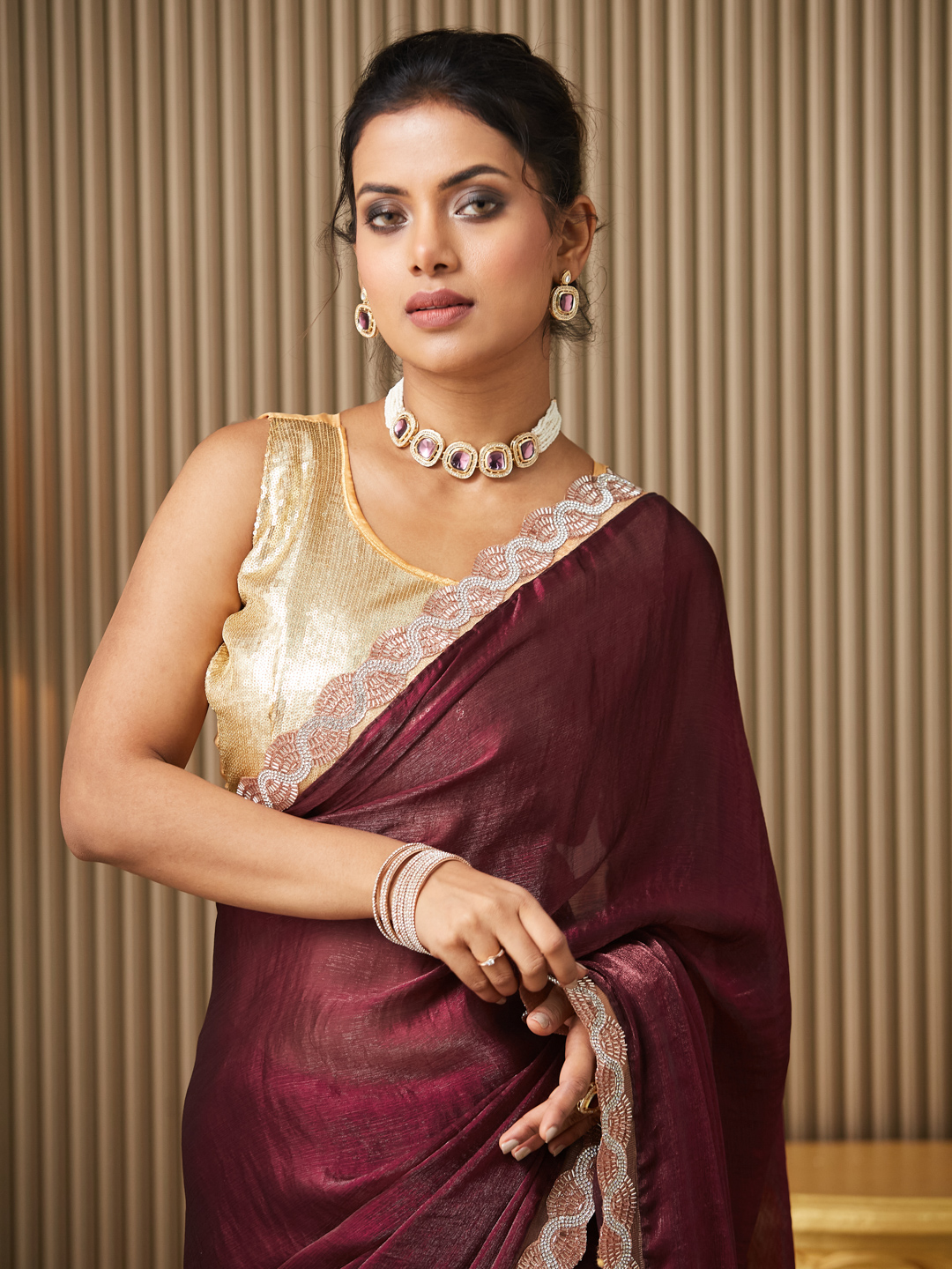 Maroon Color Chiffon Fabric Fancy Designer Bollywood Party Saree