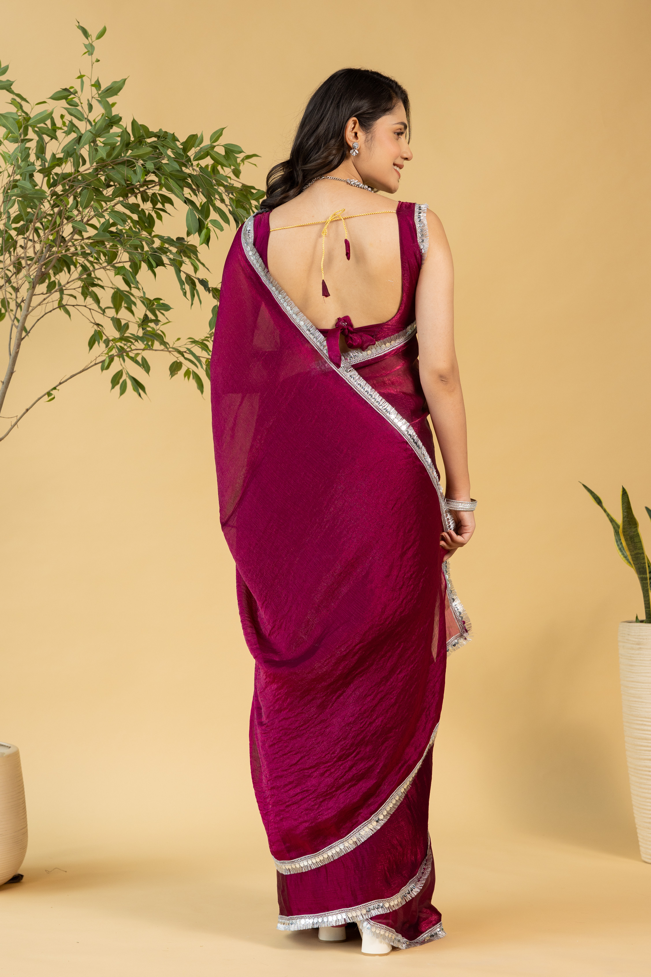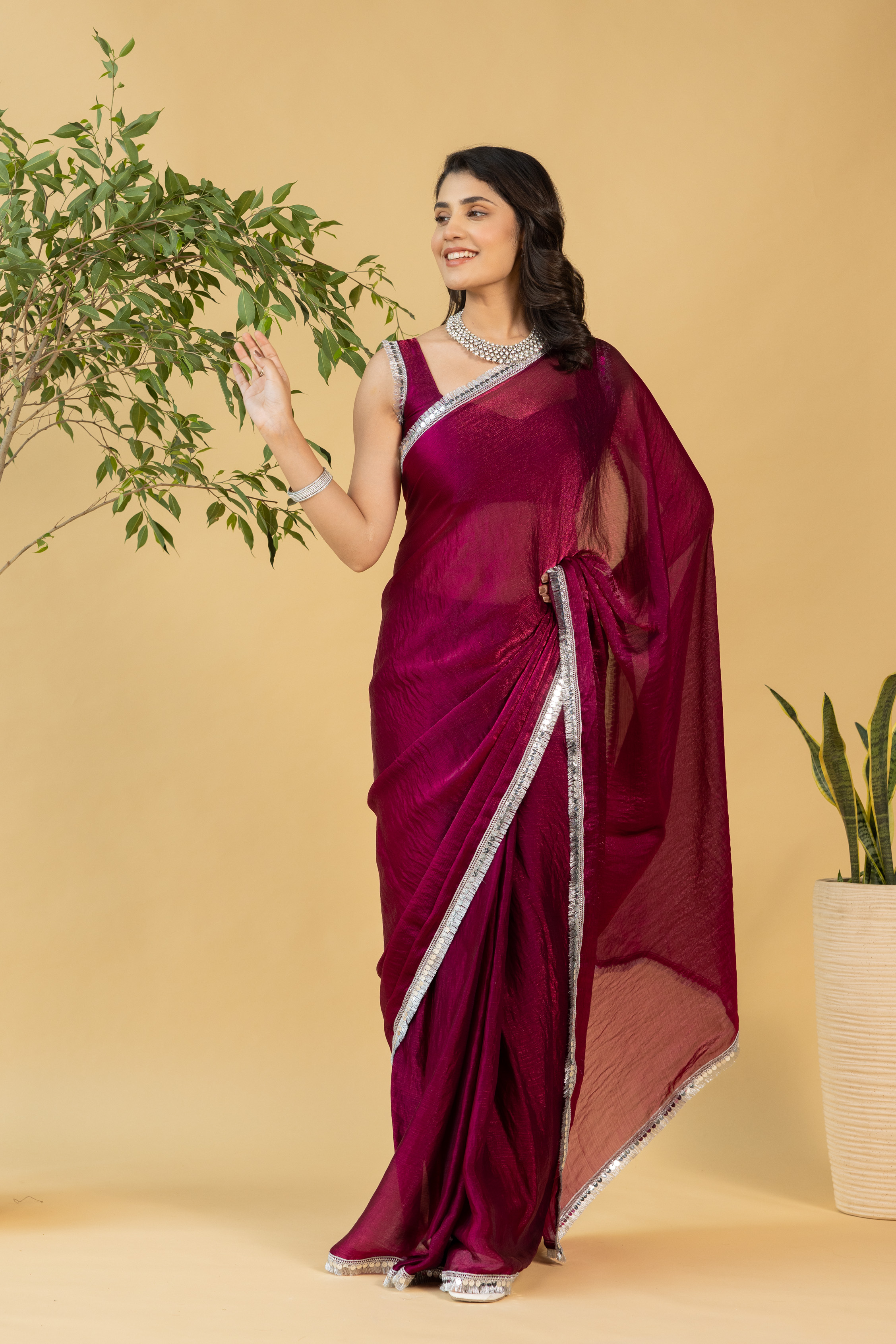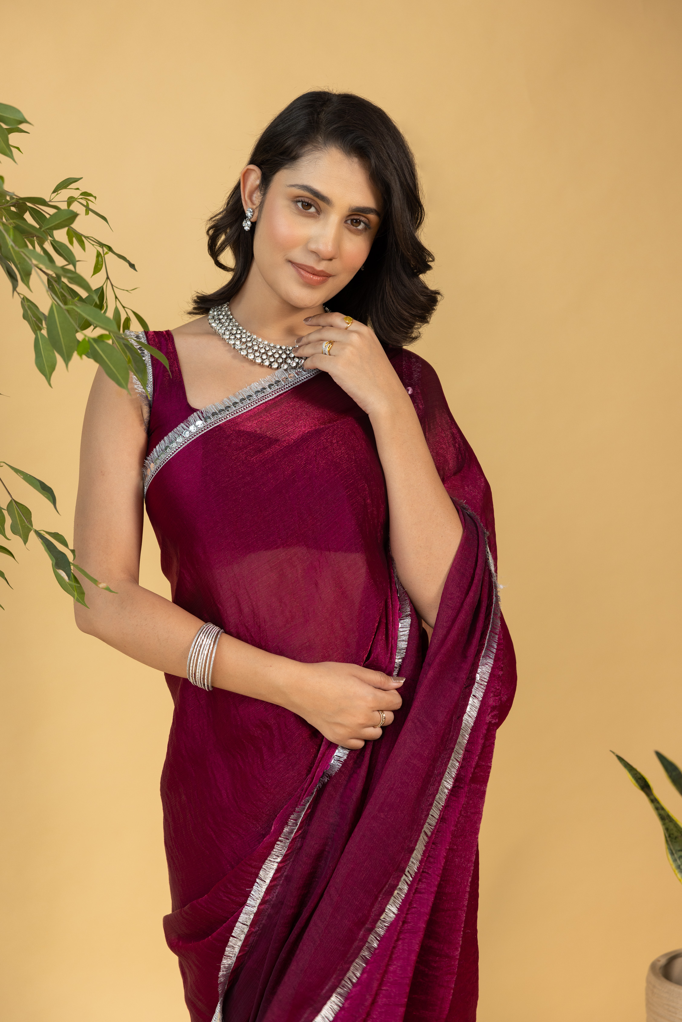 Maroon Color Chiffon Fabric Ready To Wear Saree For Graceful Bollywood Style Saree