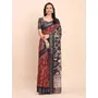 Maroon Color Linen Cotton fabric Woven Border Saree With Smart Print Designer Looks