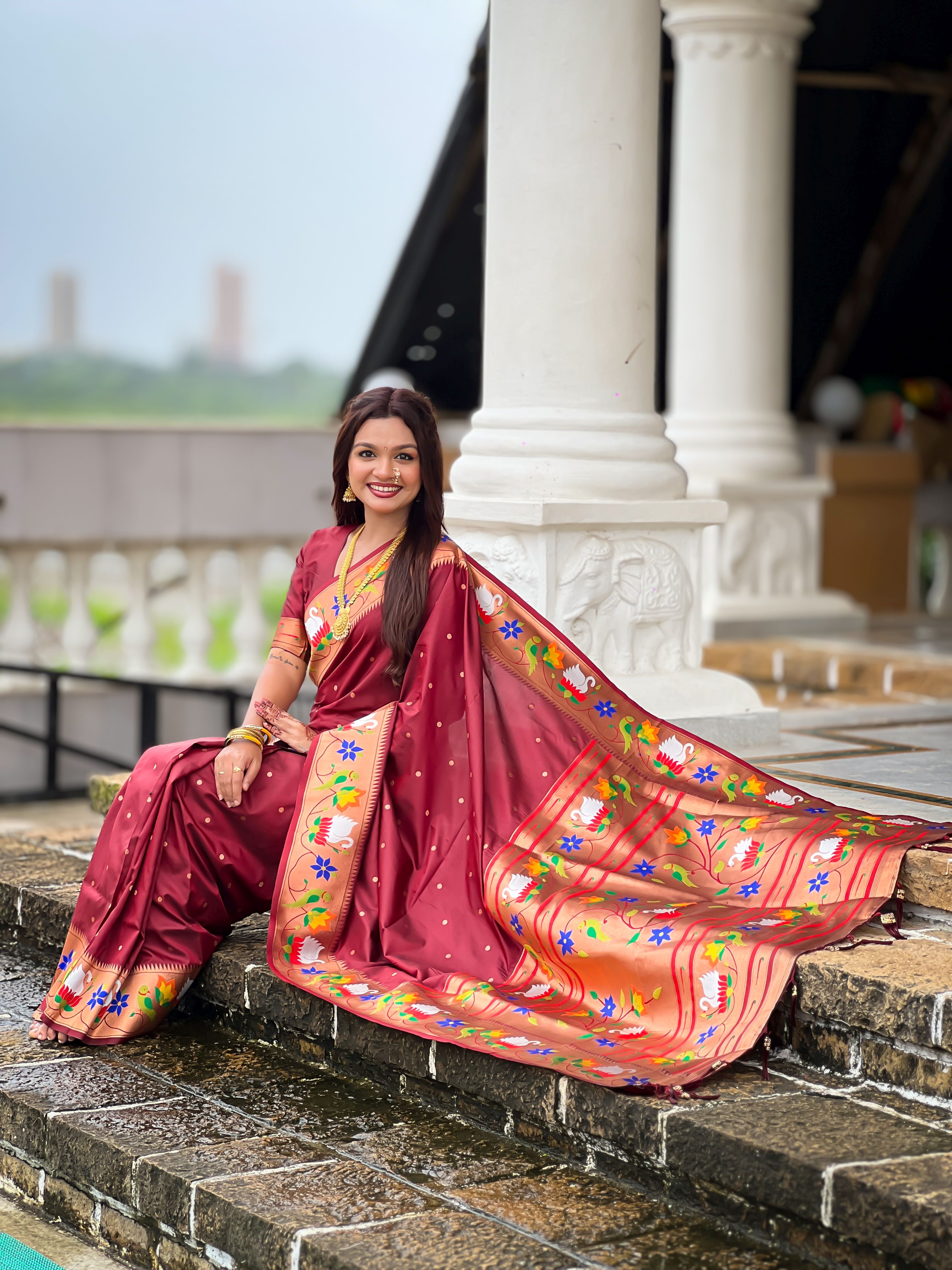 Maroon Color Paithani Silk Woven Meenakari Jacquard Designer Heavy Wedding Special Saree