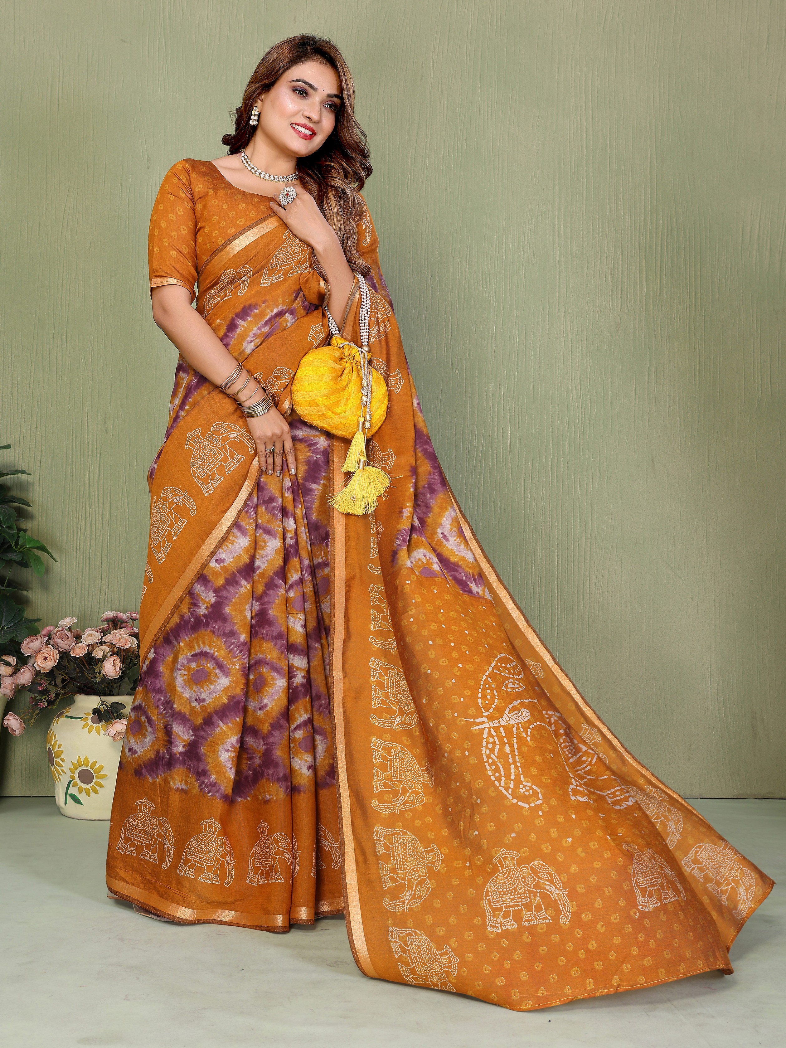 Mustard Color Mul Cotton Fabric Designer Printed Festive Special Saree