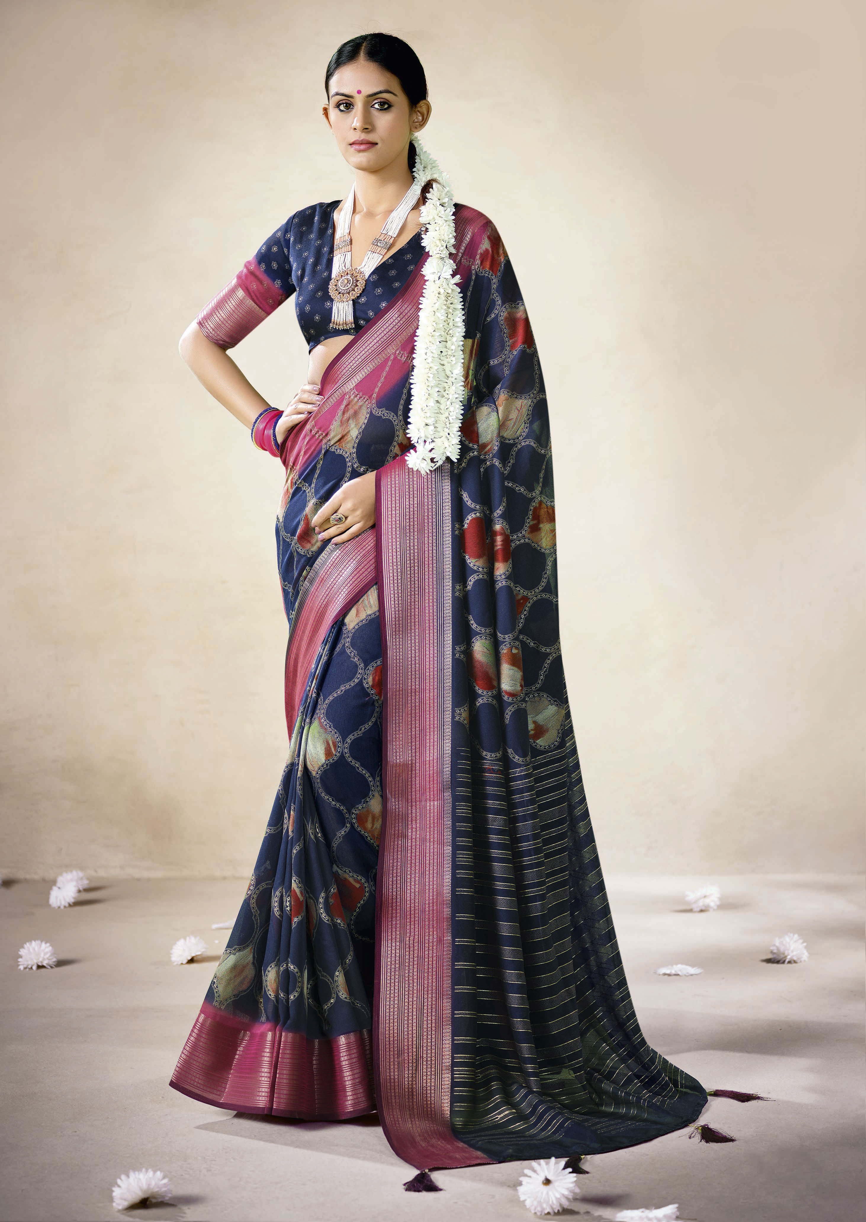 Navy Blue Color Beautiful Girlie Woven Designer Saree