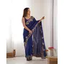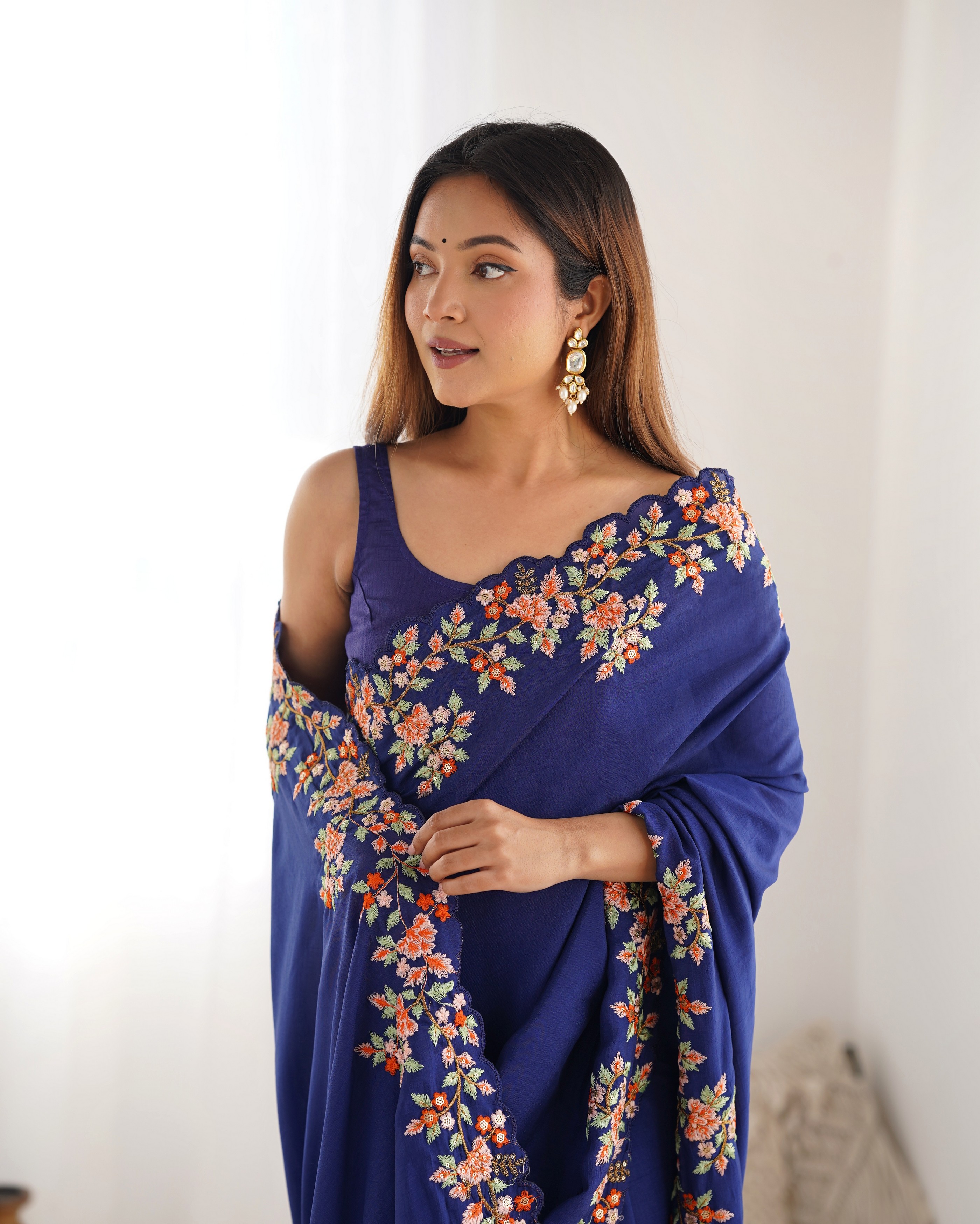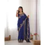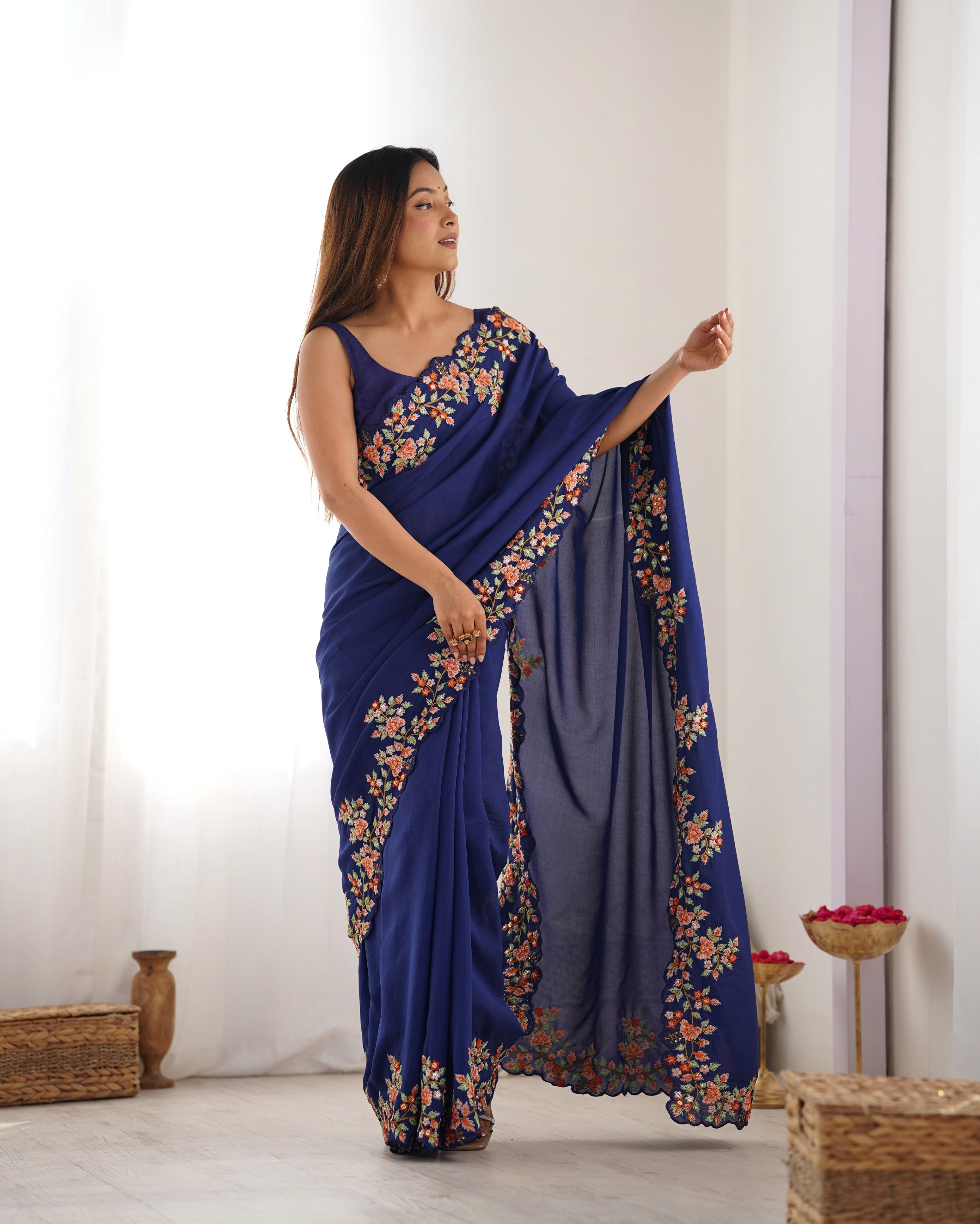 Navy Blue Color Vichitra Silk Fabric Designer Embrodery Work Ethnic Saree