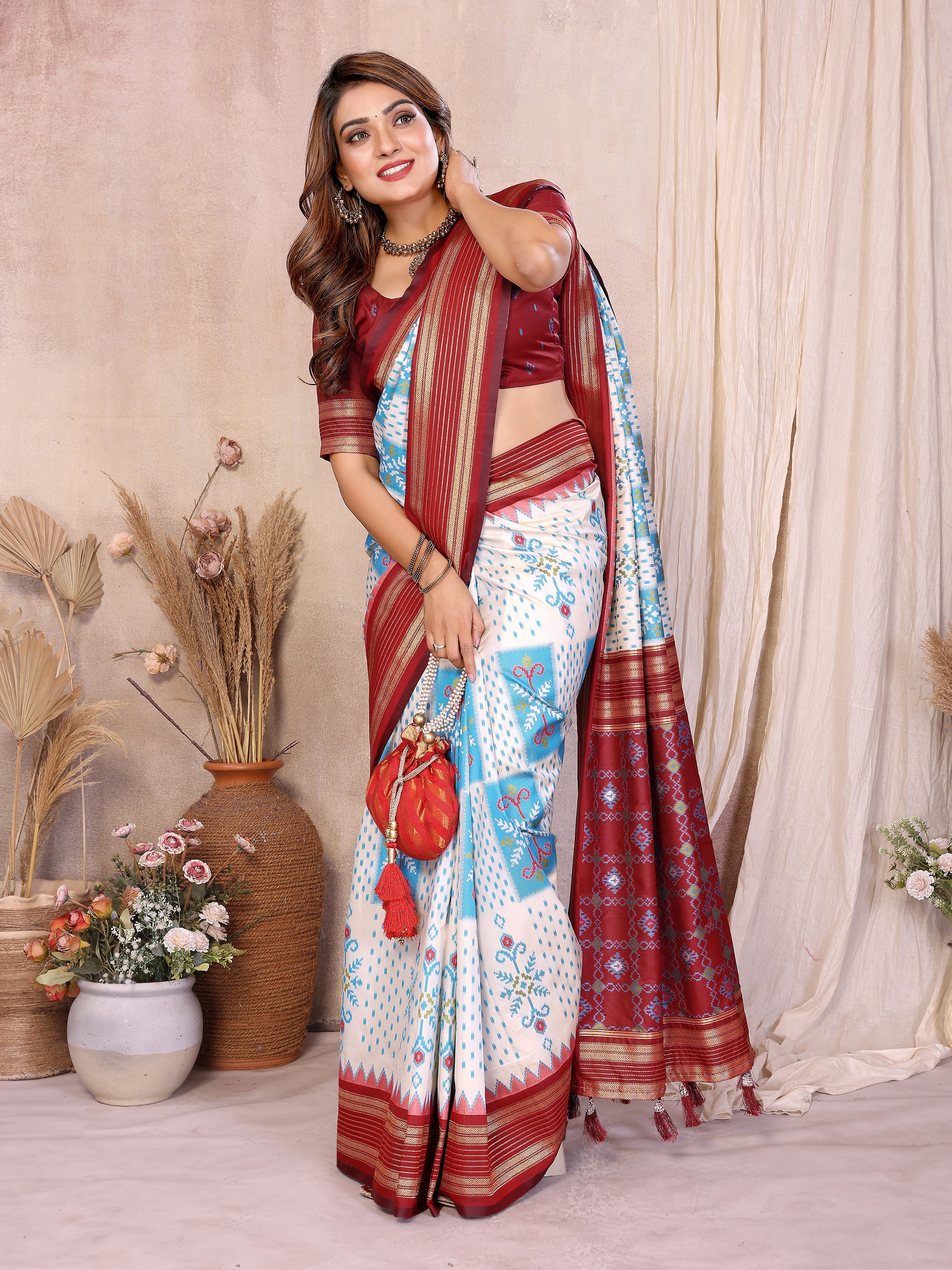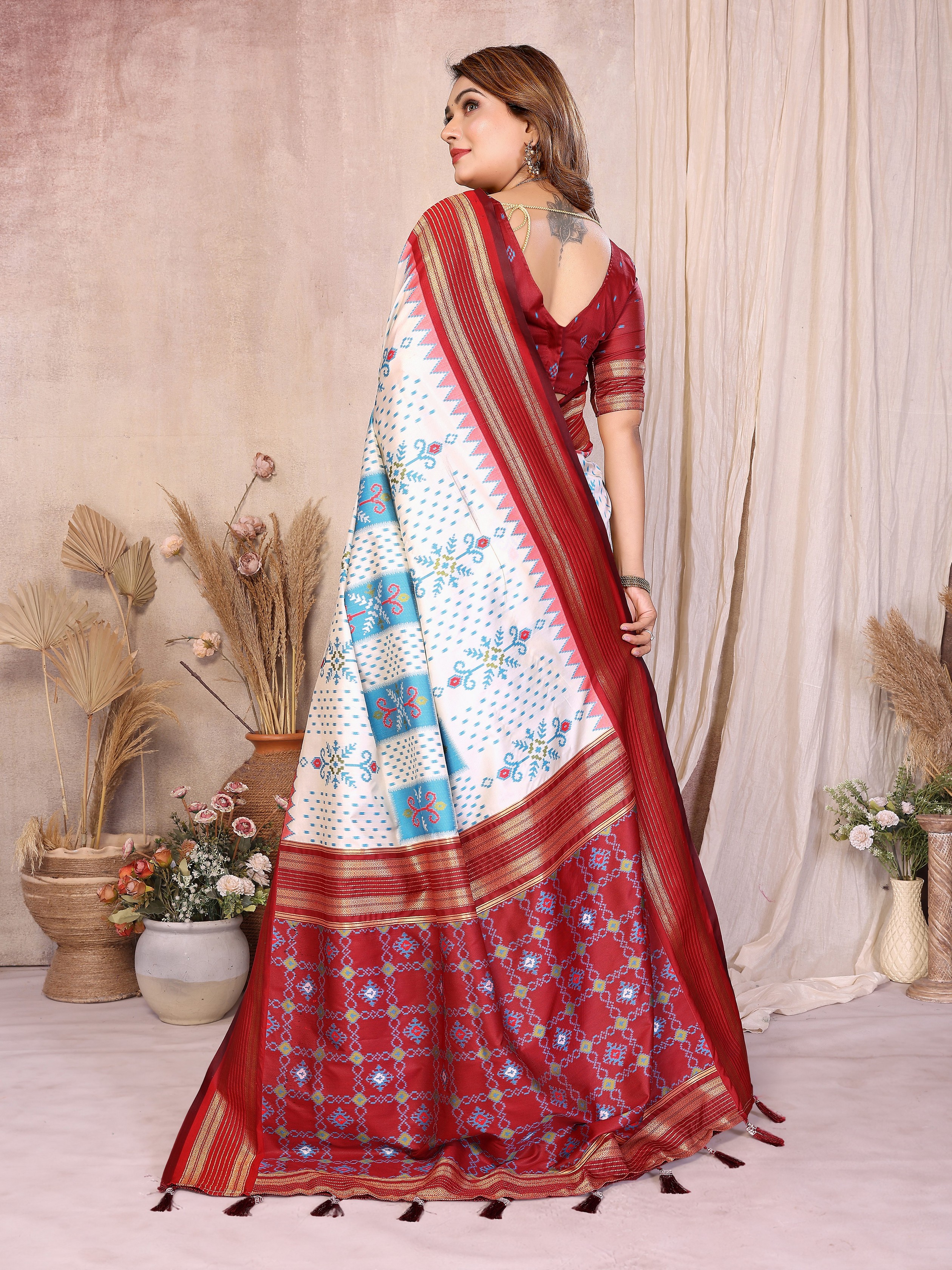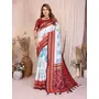 Off White Color Soft Silk Fabric Ikkat Weaving Designer Traditional Partywear Saree