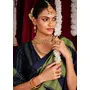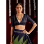 Olive Green & Navy Blue Color Ikkat Silk Fabric Designer Zig Zag Printed Traditional Party Looks Saree