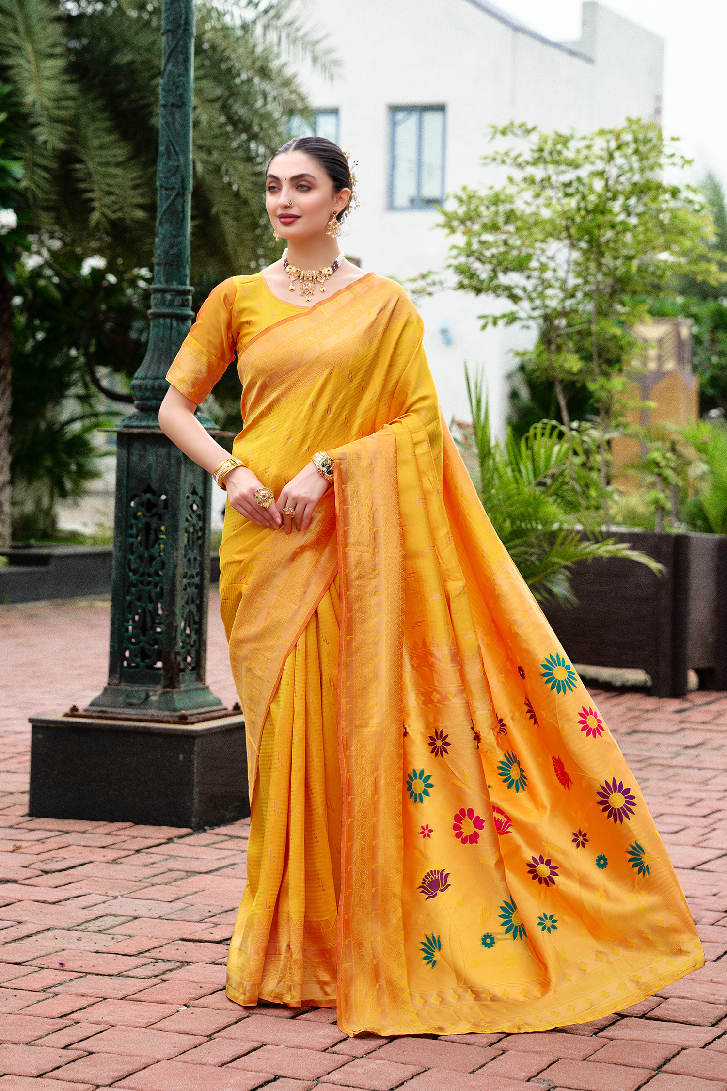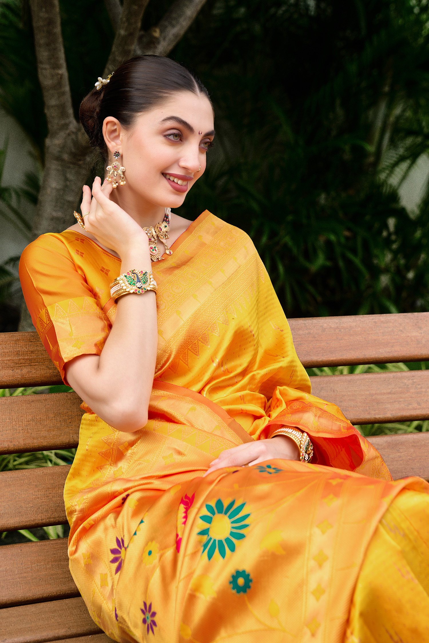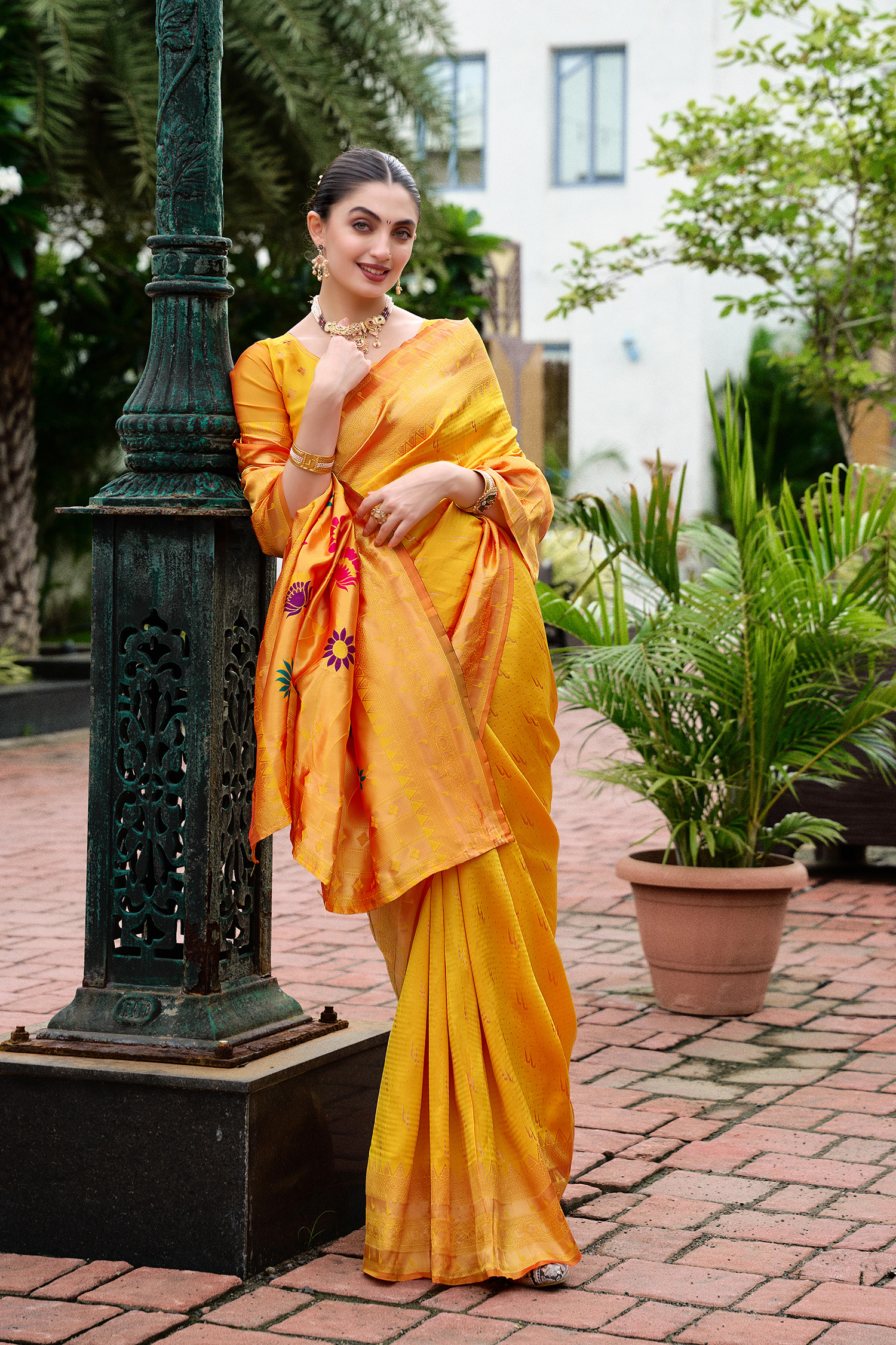 Orange Color Beautiful Silk Blended Woven Zari Designer Ceremonial Saree