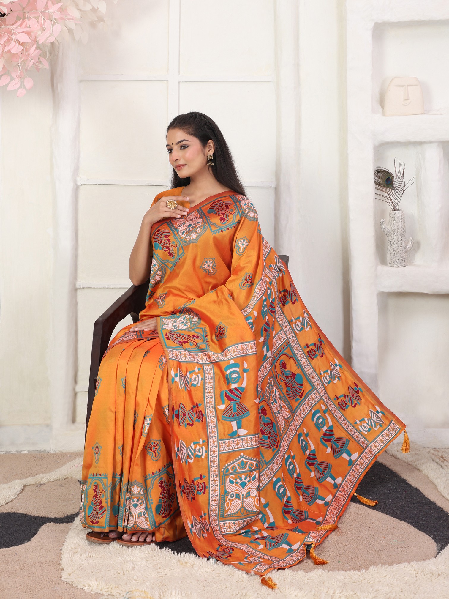 Orange Color Silk Blended Woven Designer Graceful Ceremonial Saree