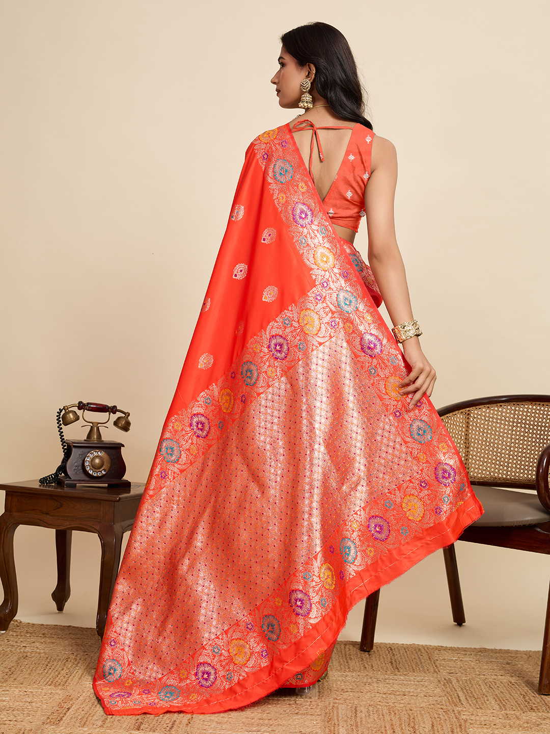 Orange Color Soft Silk Saree For Ethnic Indian Looks