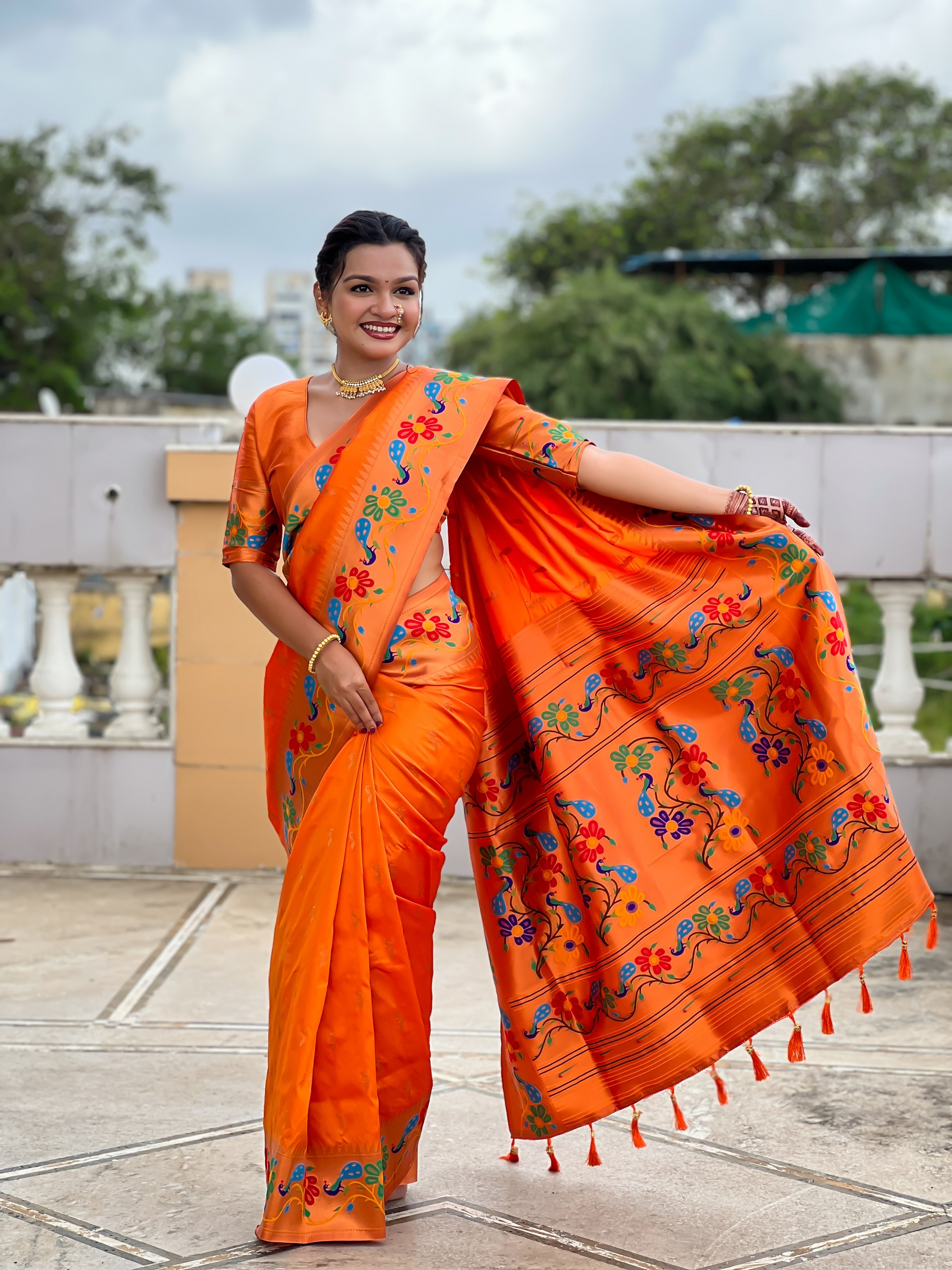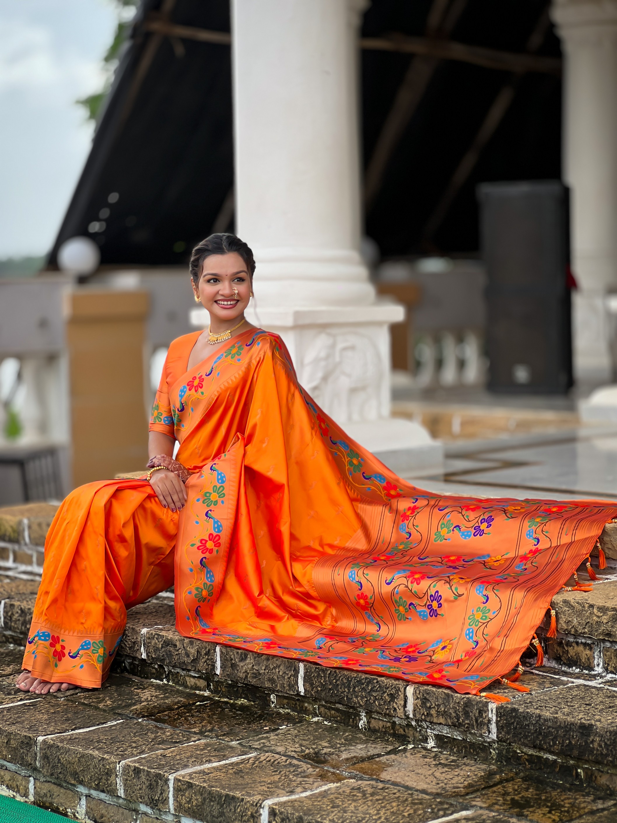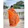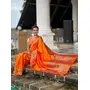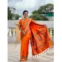 Orange Color Woven Meenakari Jacquard Designer Paithani Silk Fabric Ethnic Saree