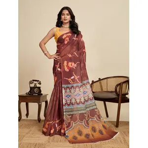 Brown Color Linen Fabric Beautiful...