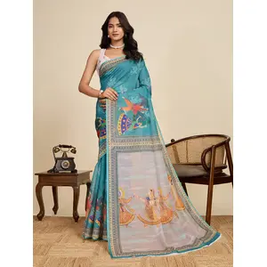 Blue Color Linen Fabric Beautiful...