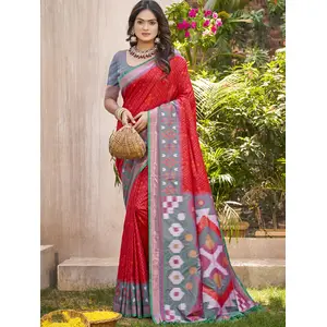Red Color Pochampalli Silk Woven...