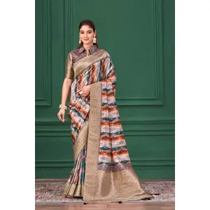 Grey Color Tussar Silk Fabric Woven...
