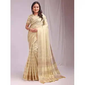 Yellow Color Woven Zari Designer...