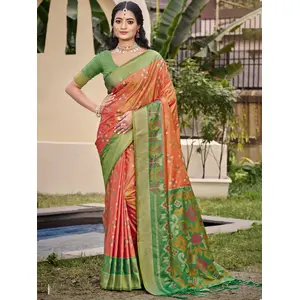 Peach Color Woven Zari Designer...