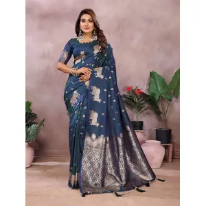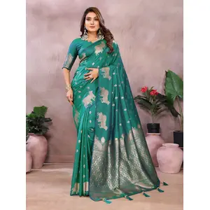 Rama Color Banarasi Silk fabric...