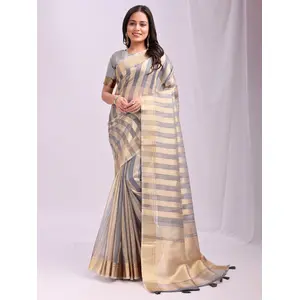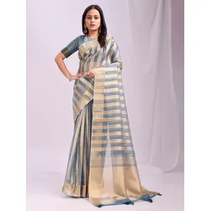 Grey Color Organza Fabric Woven Patta...