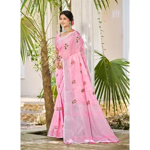 Pink Color Linen Fabric Beautifully...