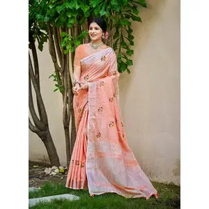 Peach Color Linen Fabric Beautifully...