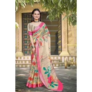Cream Color Linen Cotton Fabric Woven...