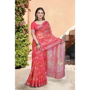 Red Color Linen Cotton Fabric Woven...