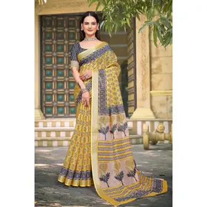 Yellow Color Linen Cotton Fabric...