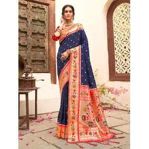Navy Blue Color Silk Blended Heavy...