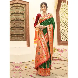 Dark Green Color Silk Blended Heavy...
