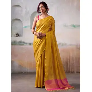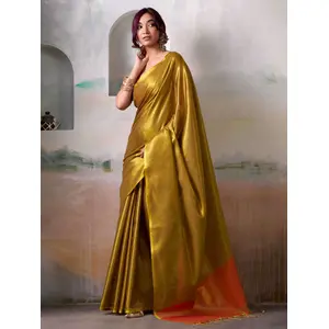 Yellow Color Smart Looks Tissue Silk...