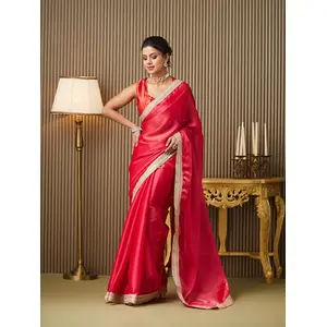 Red Color Organza fabric Designer...