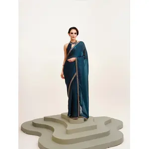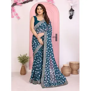 Teal Color Satin Fabric Embellished...