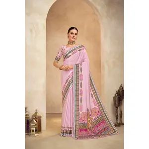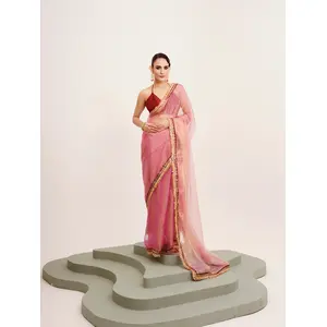Pink Color Tissue Fabric Embellished...