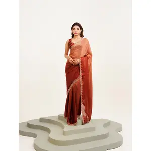 Rust Color Satin Fabric Embellished...