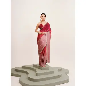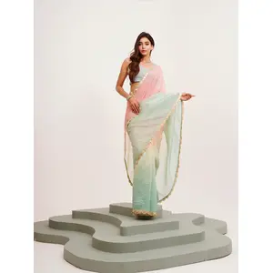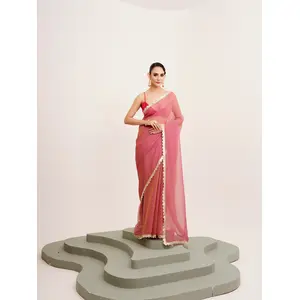 Peach Color Tissue Fabric Embellished...