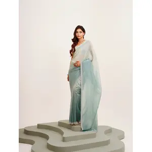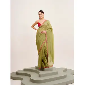 Green Color Tissue Fabric Embellished...