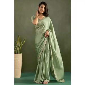 Green Color Chiffon Fabric Ready To...