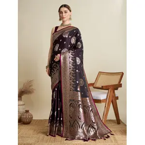 Wine Color Satin Silk Wevon Jari...