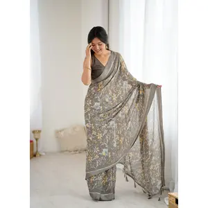 Grey Color Moss Satin Patta Printed...